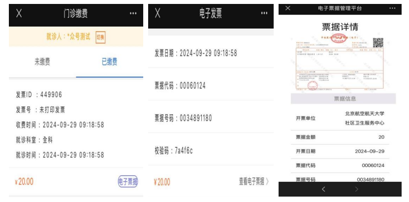 提示:上述应收金额在实际支付界面会按照患者类型调整为自费部分应付金额(例如,挂号费应收20元,在校医院享受公费医疗的退休人员实际支付时会调整为实收1元)。